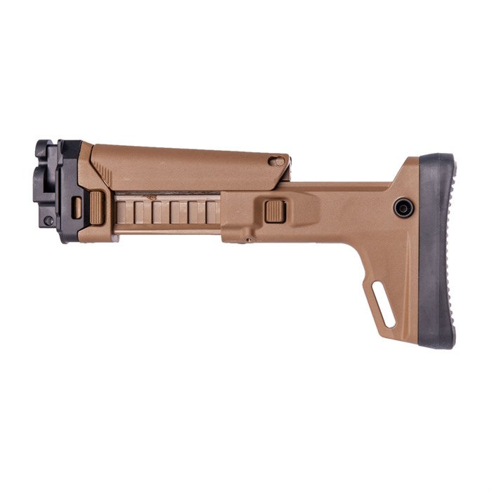 Das Kinetic Stribog Stock Kit kombiniert das beeindruckende Masada (ACR-E) Stocksystem, das von Magpul entworfen wurde, mit dem KDG Stribog Adapter, damit du es direkt mit deiner Stribog-Waffe verwenden kannst. Das Kit wird vollständig montiert geliefert, mit dem Adapter bereits am Stock für einen einfachen Einbau.