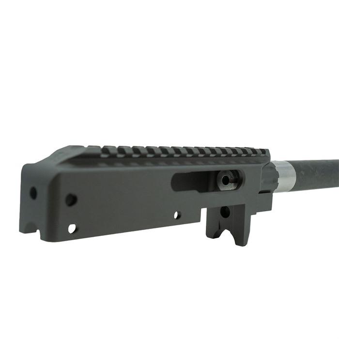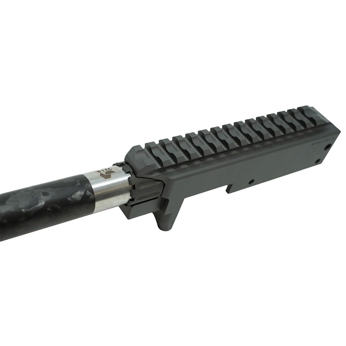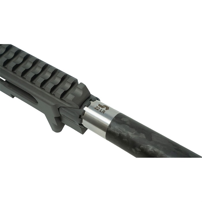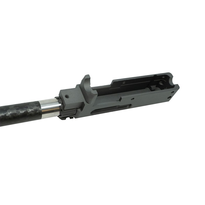 Der 16,1” Lauf hat eine Carbonfaser-Ummantelung über einem 416 Edelstahl-Innenrohr. Die Mündung ist mit ½-28 gewinde versehen. Der Empfänger selbst kommt ohne weitere Teile und ist nur mit dem Lauf verbunden. Er besteht aus 6061 Aluminium mit einer harten, klaren anodisierten Oberfläche.