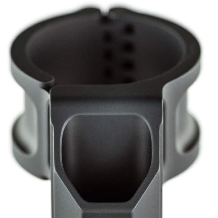 LEAP/08 State of the art 30mm scope mounts. Designed for shooters who want the lightest, stiffest, and easiest to use quick-detach scope mount possible. The LEAP/08 base incorporates different structural elements to maximize overall performance. A large diameter tubular section up front to resist torsion from side impacts, and a very wide I-beam bridge in the rear to resist recoil induced oscillations. Every Leap mount is CNC milled from 7075-T6 Aluminum billet, which has vastly superior mechanical properties to 6061-T6, and is used where ultimate strength and durability outweigh cost considerations. ViseRing™ Designed from the ground up to be lighter, lower-profile, and easier to use than traditional split rings. A low-profile design doesn't get in your way of viewing or manipulating your scope's adjustment turrets. A pair of tapered CNC machined screws lock into the base, bolstering structural rigidity. Wider than competing designs, providing more surface area to safely and securely hold your scope. A high-strength, multi-link hinge eliminates the uncertain and tedious setup required by split rings. LEAP mounts have no protruding levers, bolts, or knobs to rap your knuckles, or get caught on clothing, gear, and surroundings.