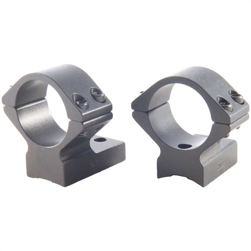 SPECS: 7000 series aluminum, black, anodized, matte finish. Accepts 1" dia. scopes, unless otherwise listed in fits column for 30mm dia. scopes. Height from bottom of ring to top of receiver: Low - .400" (10.1mm), Med - .500" (12.7mm). High - .640" (16.3mm), X‑High - .740" (18.8mm). Approx. weight 2.1 oz. (59 g). Some heights vary, see chart below. Rem. 700 also fits 721/722/725 and 40X models. Rem. Model Seven fits receivers with four screw holes. Savage AccuTrigger fits round top centerfire receivers with AccuTrigger. Win. 70 fits .860" rear hole spacing only.