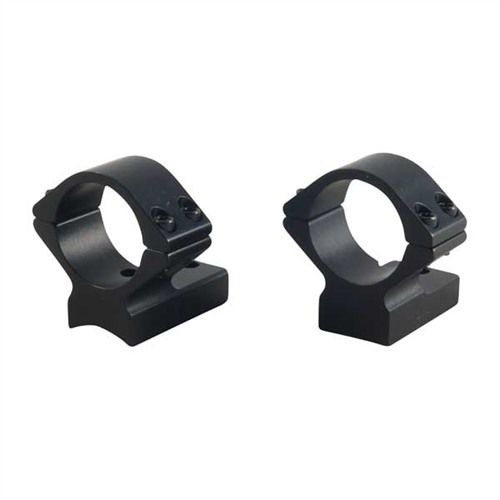 SPECS: 7000 series aluminum, black, anodized, matte finish. Accepts 1" dia. scopes, unless otherwise listed in fits column for 30mm dia. scopes. Height from bottom of ring to top of receiver: Low - .400" (10.1mm), Med - .500" (12.7mm). High - .640" (16.3mm), X‑High - .740" (18.8mm). Approx. weight 2.1 oz. (59 g). Some heights vary, see chart below. Rem. 700 also fits 721/722/725 and 40X models. Rem. Model Seven fits receivers with four screw holes. Savage AccuTrigger fits round top centerfire receivers with AccuTrigger. Win. 70 fits .860" rear hole spacing only.