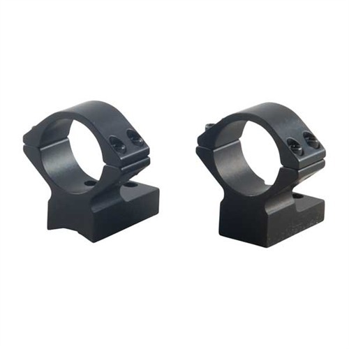 SPECS: 7000 series aluminum, black, anodized, matte finish. Accepts 1" dia. scopes, unless otherwise listed in fits column for 30mm dia. scopes. Height from bottom of ring to top of receiver: Low - .400" (10.1mm), Med - .500" (12.7mm). High - .640" (16.3mm), X‑High - .740" (18.8mm). Approx. weight 2.1 oz. (59 g). Some heights vary, see chart below. Rem. 700 also fits 721/722/725 and 40X models. Rem. Model Seven fits receivers with four screw holes. Savage AccuTrigger fits round top centerfire receivers with AccuTrigger. Win. 70 fits .860" rear hole spacing only.