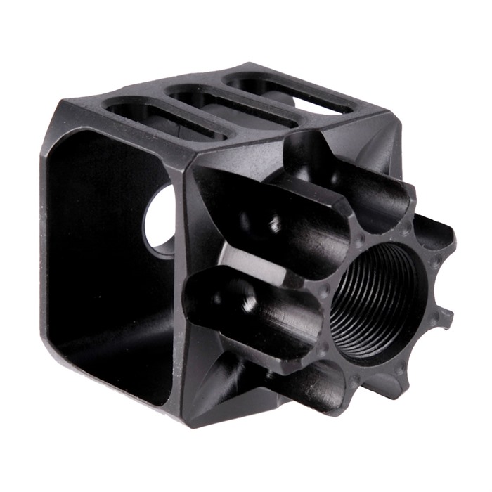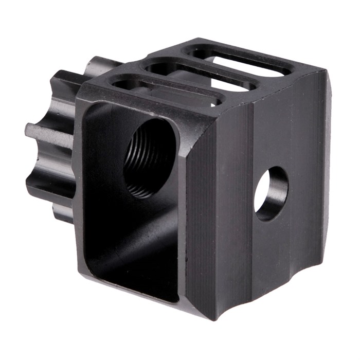 - Schrauben Sie den Mündungsbremsen mit dem 5/824 Gewinde auf die Mündung der Waffe.