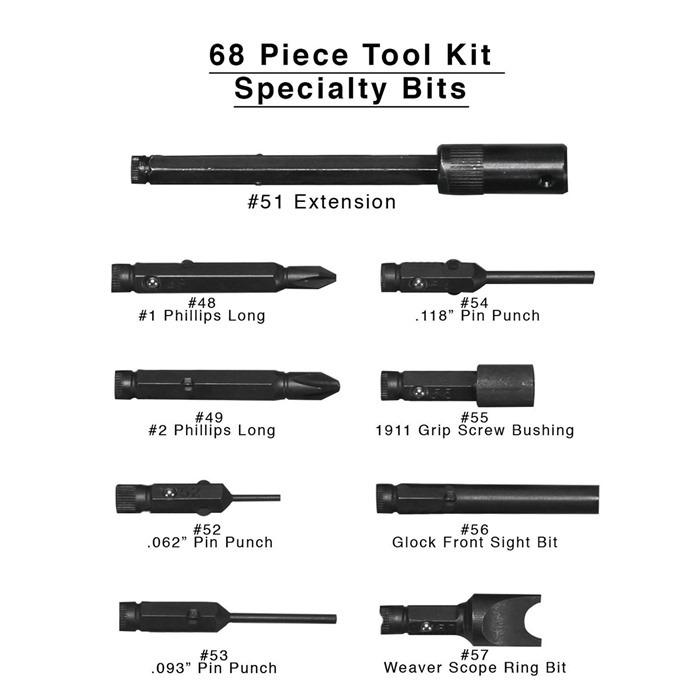- 68-teiliges Werkzeugset: Dieses umfangreichere Set beinhaltet zusätzliche Werkzeuge und bietet eine breitere Palette an Optionen für detailliertere Waffenmechanikaufgaben.