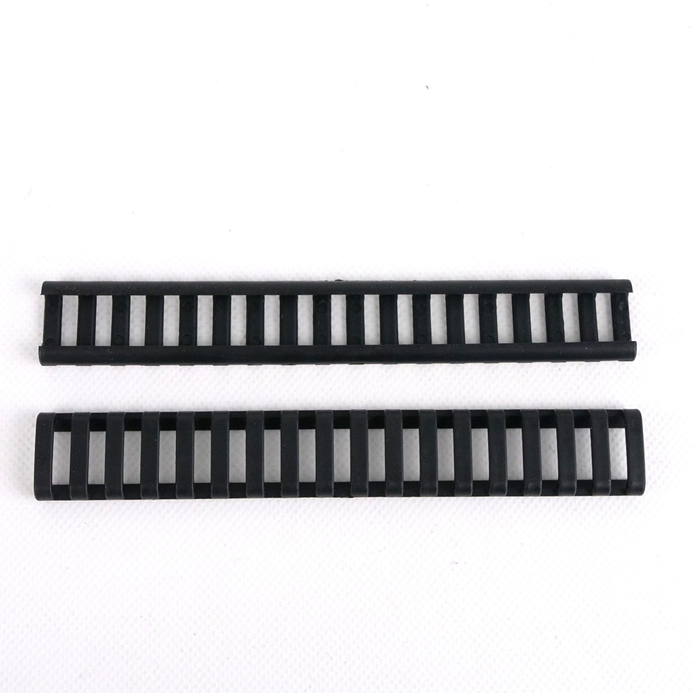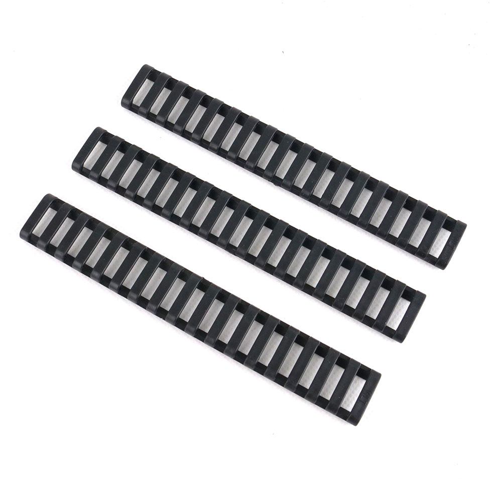 Der Ladder Picatinny Rail Cover 18-SLOT bietet eine schlanke und flache Abdeckung für deine 1913 Picatinny-Schienen. Dieses Set enthält drei 17,8 cm lange Leiter-Style Rail-Panels, die ausreichend Schutz für ein standardmäßiges Quad-Rail-System bieten.