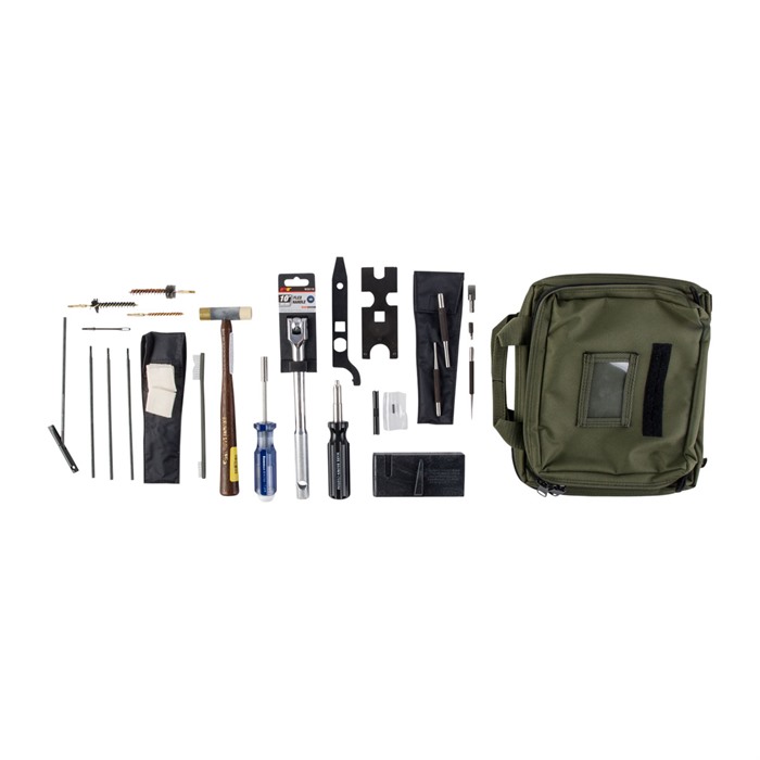 Das M16/M4 Wartungspaket ermöglicht eine vollständige Zerlegung der Waffe für routinemäßige Wartung und Reparatur. Es enthält auch Werkzeuge für Visieranpassungen und die Feldreinigung der Colt M16/M4. Darüber hinaus sind spezielle Werkzeuge zum Entfernen des Laufmutter, des Mündungsfeuers und der unteren Empfängererweiterung enthalten, ohne dabei Teile des Gewehrs zu beschädigen.