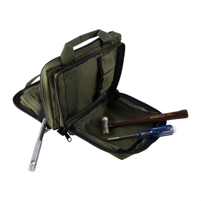 Enthält: #81 MAGNA-TIP-Hohlschraubendrehergriff mit Leupold Windage (L/B) und #185-10 Bits; 1/16\", 1/8\" und 1/4\" Stiftstifte; 1/2\" Antriebshandgriff; 3/4\" Nylon-/Messinghammer; Schaftwerkzeug; Kombinationsschlüssel; unterer Empfänger-Vizeblock; A1/A2 Sichtschlüssel; Träger-Kohlenstoffschaber; Deluxe-Modell Schaftreinigungsset. Ungefähr 5 lb. (2.3 kg) Gewicht.