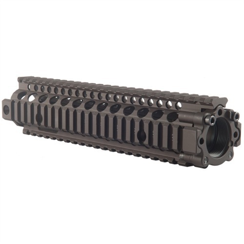 A machined aluminum multi-rail handguard specifically designed for the Special Operations Command (SOCOM) M4A1 carbine, the RIS II enables installation of an M203 40mm grenade launcher, while allowing the barrel to free float. The M203 attaches to the bottom rail quickly and easily, without special tools or additional parts. Full-length, MIL-STD 1913 Picatinny rails provide plenty of space to add other mission-specific accessories as needed. Top rail is designed to mate continously with the receiver rail. All models come with all required mounting hardware, instructions, and three molded polymer, snap-on rail covers. RIS II requires the installation of a low-profile gas block. FSP RIS II models have a cutout in the top rail that allows retention of the standard A2 gas block/front sight tower on a carbine-length gas system. MK 18 RIS II is specifically designed for an M4A1 carbine with Mk18 CQBR (Close Quarters Battle Receiver) upper receiver and 10.3" barrel. Provides barrel free-float and expanded accessory mounting options, while deleting M203 mounting capability. Requires low-profile gas block.