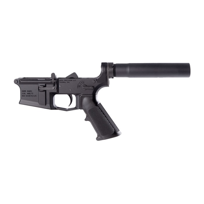 The M4E1 Complete Lower Receiver is the perfect base for your custom AR15 pistol build. This complete lower features Aero Precision’s new M4E1 Lower Receiver with an A2 Grip and Enhanced Pistol Receiver Extension. M4E1 Stripped Lower Receiver - Anodized Black A2 Grip - Black Mil-spec Lower Parts Kit Enhanced Pistol Receiver Extension AR15 Carbine Buffer and Spring All complete lower receivers are transferred as ""OTHER"" on the Federal 4473 Form. Although this product is labeled a ""Pistol Complete Lower Receiver"", it is not technically a pistol until it is fully assembled in to a pistol configuration. State and local laws may vary from ATF definitions. Always have full knowledge of your local laws before attempting to purchase a firearm.