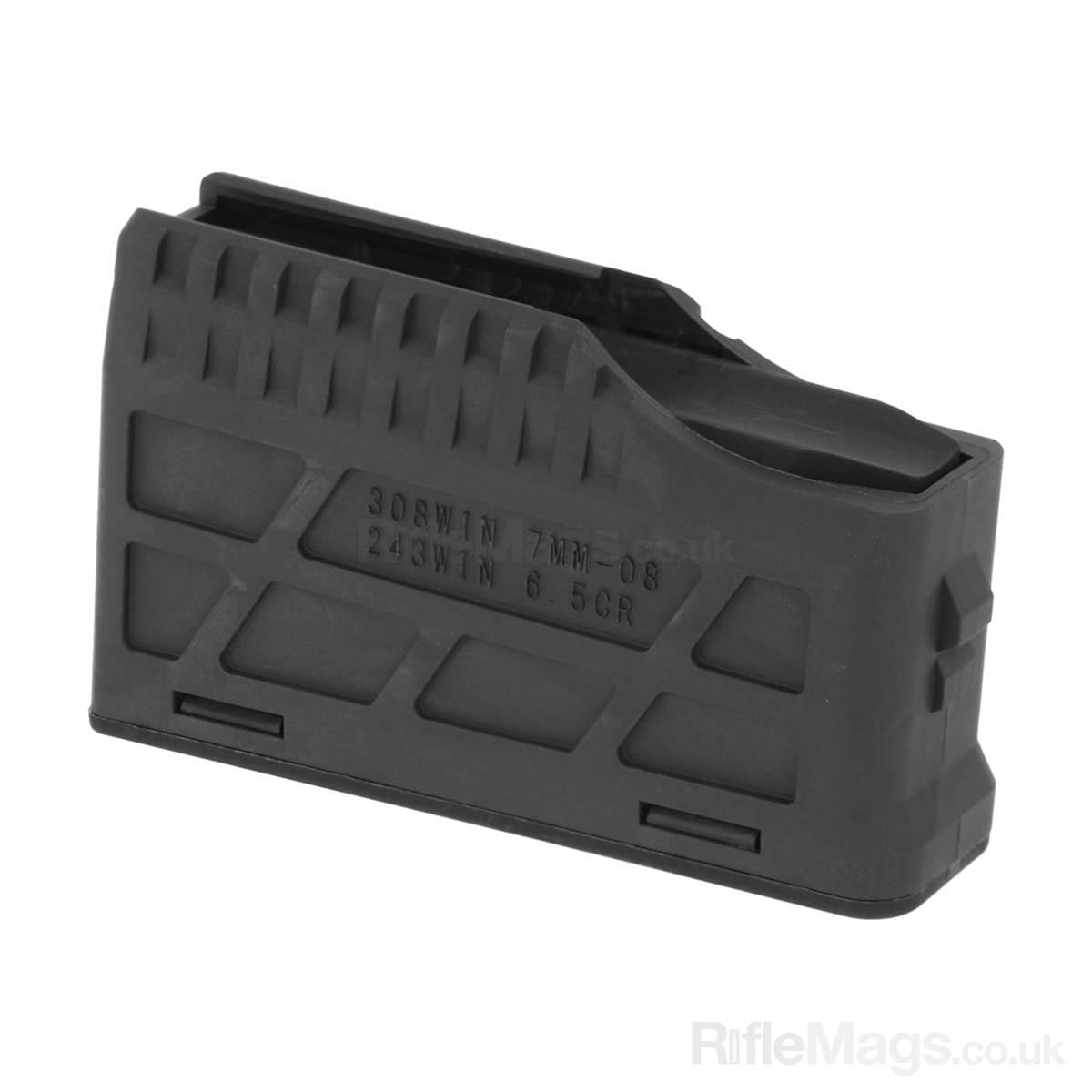- Verwende das Magazin nur mit den kompatiblen Kalibern: .308 Win, .243 Win, 6.5 Creedmoor, 7mm08 Rem.
