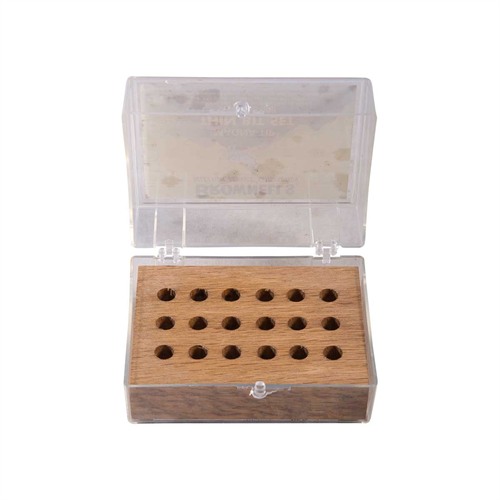 For the first time in many purchases I am completely disappointed with a Brownells product. This box is a small item but you would expect it to do the job. The plastic is too thin and warps resulting in the latch not working. In addition, the hinges are worthless and the lid comes loose. I've dumped my bits twice since using this box. The wood block is fine but you folks need to rethink the box.