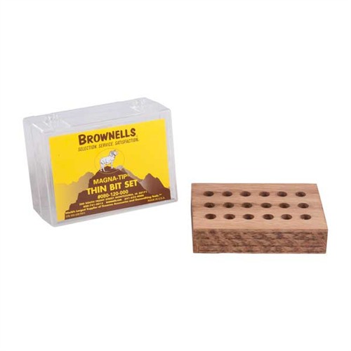 Das MAGNA-TIP® THIN-BIT SET von BROWNELLS bietet dir achtzehn unglaublich dünne Bits, die ideal für die extra-schmale Schraubenschlitze sind, die du oft in der Waffenwerkstatt antriffst.
