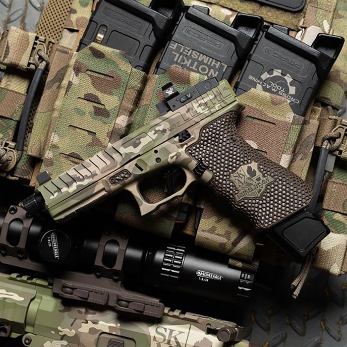 Führe dein geladenes Magazin schnell und reibungslos in den Griff der Glock-Pistole mit dem eleganten Tyrant Designs Glock Gen3 17/22/31/34/35/45 kompatiblen Magwell. Hergestellt aus hochwertigen Materialien, ermöglichen diese sorgfältig gestalteten Magwells, dass du mit nur ein wenig Übung ein frisches Magazin laden kannst, ohne jemals auf die Pistole schauen zu müssen. Gewinne Wettbewerbe oder verteidige dich besser mit diesen zusätzlichen Sekunden. Erhöhe deine Nachladegeschwindigkeit In einem Wettbewerb kann es auf Mikrosekunden ankommen. Geschwindigkeit ist entscheidend, egal in welchem Szenario, besonders die Zeitspanne zwischen Magazinwechseln. Die verbesserten Ergonomien des Tyrant Designs Glock-kompatiblen Magwells werden deine Ladegeschwindigkeiten erhöhen. Vorwärts gerichtete Ausschnitte sorgen für Komfort, und ein aggressiver Trichter stellt sicher, dass deine Nachladungen schnell und erfolgreich sind. Du wirst nie wieder einen Magazinwechsel verpatzen. In Notfallsituationen sind Patzer der Unterschied zwischen Leben und Tod. In diesen Momenten sind diese Mikrosekunden noch wichtiger, und du möchtest nie in Frage stellen, ob schneller zu sein in einer Selbstverteidigungssituation helfen könnte. Wie es funktioniert Der Magwell-Adapter verbreitert sich, um eine größere Öffnung zu schaffen, die das Magazin in die Feuerwaffe führt. In Form eines Trichters reduziert er das Patzen und die Notwendigkeit, genau zu zielen, um das Magazin in die Feuerwaffe zu bekommen. Weniger Patzen bedeutet schnellere Nachladegeschwindigkeit. Entwickelt zur Verbesserung der Nachladungen Hergestellt aus hochwertigem Aluminium, bieten diese Magwells, die für die Glock 17, 22, 31, 34, 35 und 45 entworfen wurden, Gewicht, um deine Nachladungen zu verbessern. Dieses Gewicht sorgt auch für Balance bei deiner Glock. Verliere nie wieder Teile mit diesem einteiligen Design. Die Halterung ist komfortabler mit einer Schraube, die aus anodisiertem Aluminium besteht. Funktionalität und Halterung werden durch die Unterseite gesichert. Das Entfernen von defekten oder feststeckenden Magazinen wird nie ein Problem sein, dank der Rampe und der Kante.Lieferzeit ca. 14-21 Tage.