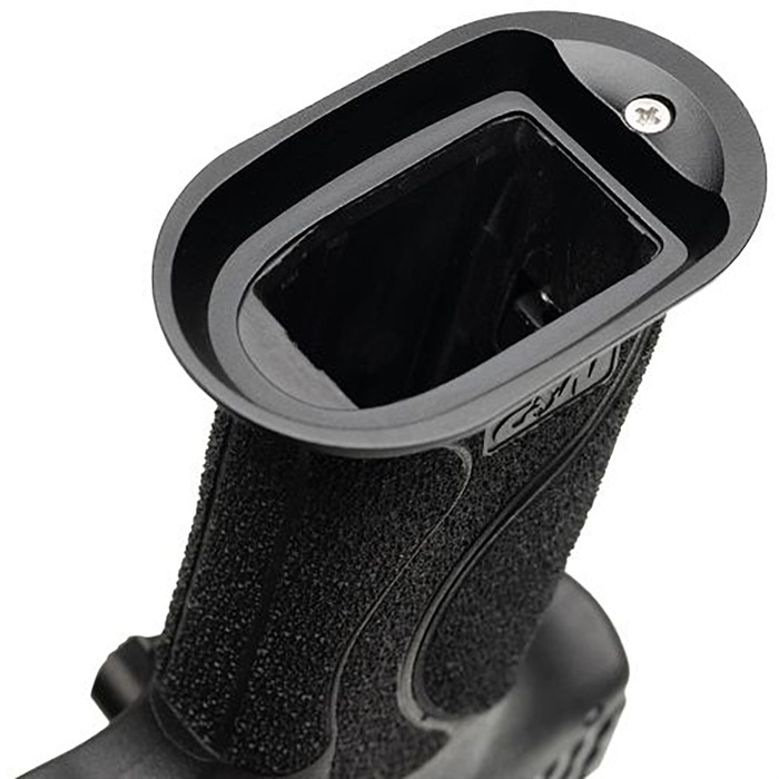 Der Magwell hat eine hardcoat anodisierte Oberfläche. Diese Beschichtung macht ihn kratzfest und sorgt dafür, dass er über die Zeit hinweg langlebig bleibt. Er hilft auch, das Aussehen und die Qualität selbst bei häufigem Gebrauch zu bewahren.