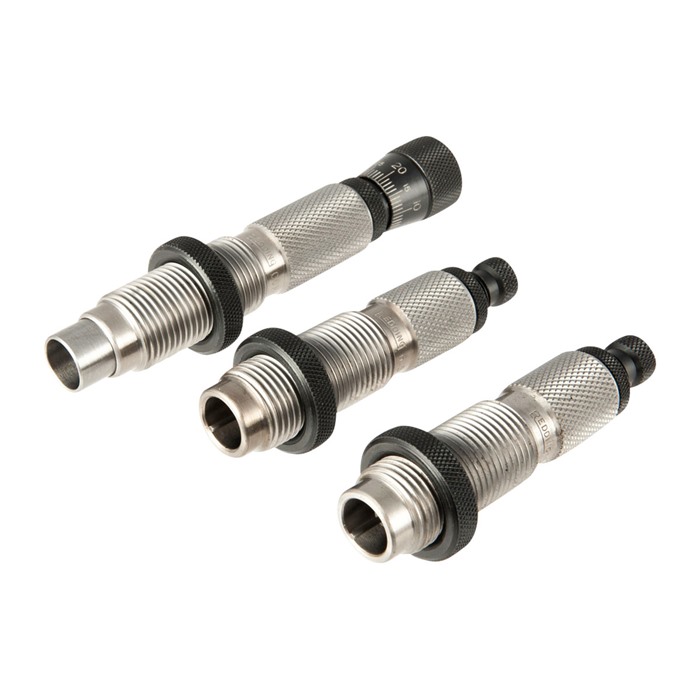 Die Master Hunter „Deluxe“ Die Sets bieten jetzt die Möglichkeit des Neck Sizing für eine optimale Ladeentwicklung auf dem Schießstand. Das Master Hunter „Deluxe“ Drei (3) Die Set kombiniert die beiden Die Sets mit der Ergänzung eines Standard Neck Sizing Dies.
