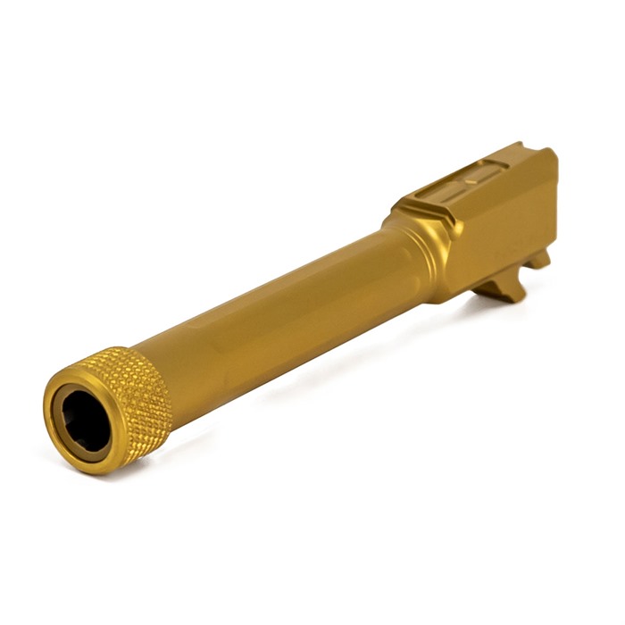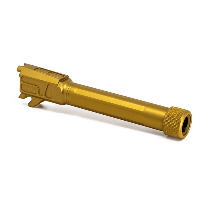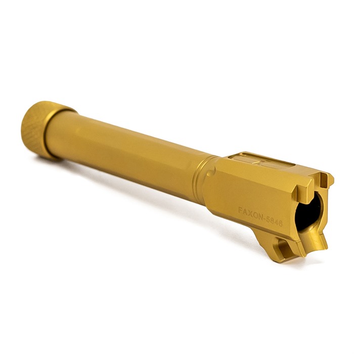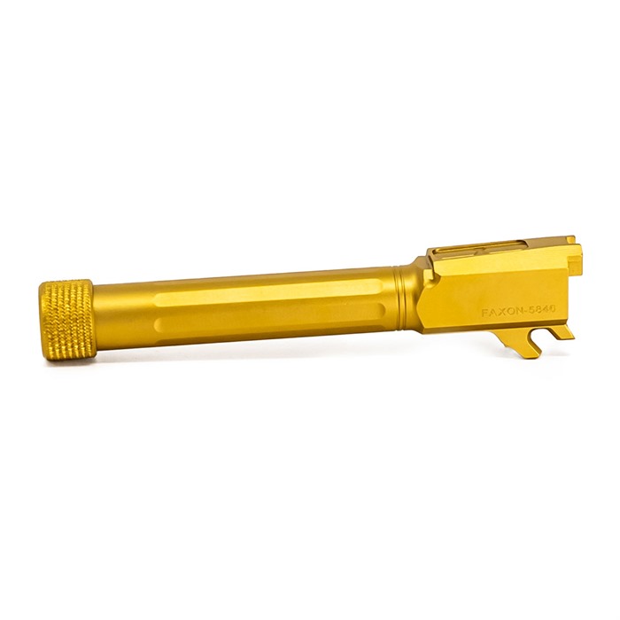 Der MATCH 9MM LUGER Straight Fluted Barrel für die SIG SAUER P365 XL und der MATCH 9MM Threaded Straight BBL für die SIG SAUER P365XL in Gold sind die perfekte Wahl für alle, die ihre Schießleistung steigern möchten.