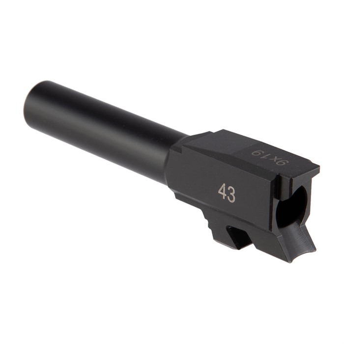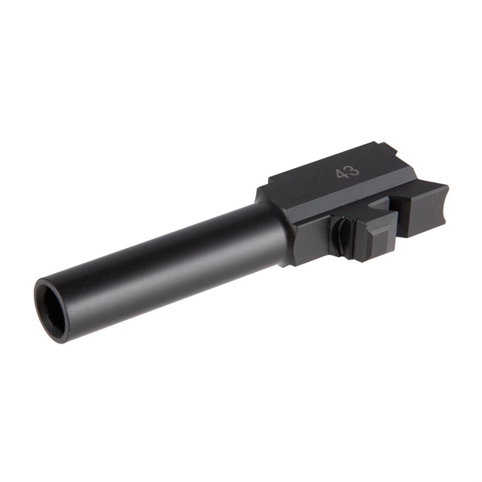 The Glock® 43 is an outstanding EDC / CCW / personal defense pistol. It's not designed to punch the tightest groups on paper targets - but it has a lot more accuracy potential than folks may think. Drop in our Match-Grade Barrel for Glock® 43 and find out just how much more accuracy your G43 is ready to give you! What makes our Glock® 43 barrel match-grade is the way it's machined from hardened 416R stainless steel to precise dimensions for a tight lockup and long service life. Installation should be a straight drop-in deal on most guns. The extra-hard Black Nitride finish resists surface wear and stops in its tracks whatever corrosion might try to challenge the stainless steel. Ahead of the 9mm Luger (9x19mm) chamber is a button-rifled bore with standard, 1-10" right-hand, 6-groove rifling compatible with "practice" ammo with non-jacketed bullets. Fits Glock® 43 ONLY 416R stainless steel Black Nitride finish Button-rifled, 1-10" twist Threaded model has 1/2"-28 tpi threads Our Match-Grade Barrel for the Glock® 43 is available with your choice of a Plain muzzle or Threaded (1/2"-28 tpi) to enable installation of a compensator or sound suppressor. Both are laser engraved with the chambering and the Glock model they fit.