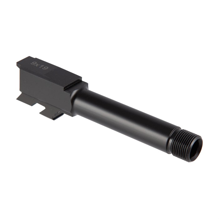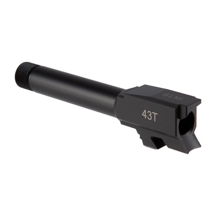 The Glock® 43 is an outstanding EDC / CCW / personal defense pistol. It's not designed to punch the tightest groups on paper targets - but it has a lot more accuracy potential than folks may think. Drop in our Match-Grade Barrel for Glock® 43 and find out just how much more accuracy your G43 is ready to give you! What makes our Glock® 43 barrel match-grade is the way it's machined from hardened 416R stainless steel to precise dimensions for a tight lockup and long service life. Installation should be a straight drop-in deal on most guns. The extra-hard Black Nitride finish resists surface wear and stops in its tracks whatever corrosion might try to challenge the stainless steel. Ahead of the 9mm Luger (9x19mm) chamber is a button-rifled bore with standard, 1-10" right-hand, 6-groove rifling compatible with "practice" ammo with non-jacketed bullets. Fits Glock® 43 ONLY 416R stainless steel Black Nitride finish Button-rifled, 1-10" twist Threaded model has 1/2"-28 tpi threads Our Match-Grade Barrel for the Glock® 43 is available with your choice of a Plain muzzle or Threaded (1/2"-28 tpi) to enable installation of a compensator or sound suppressor. Both are laser engraved with the chambering and the Glock model they fit.