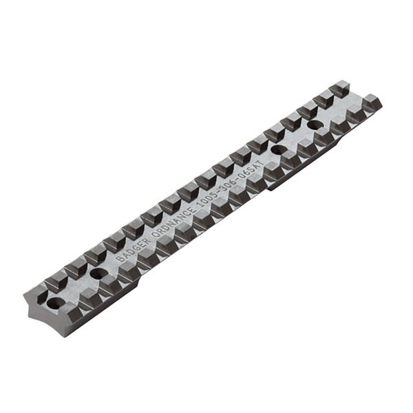 Badger Ordnance’s Savage Short Action Scope Rail (AccuTrigger) is a heavy-duty steel base with built-in 20 MOA forward angle bias so you can take those ultra-long-range shots without exceeding the elevation adjustment of your scope. The Badger Ordnance Savage Short Action Scope Rail (AccuTrigger) has a MIL-STD 1913 Picatinny slot pattern for maximum compatibility with the many Picatinny tactical scope rings currently available. Fits Savage bolt action rifles with AccuTrigger and rounded, solid-top receiver Machined from pre-hardened, ordnance-grade 4142 carbon steel Hard, anti-corrosion matte black mil-spec manganese phosphate Parkerized finish Bore height dimension is .31" The Badger Ordnance Savage Short Action Scope Rail (AccuTrigger) has an integral recoil lug that ensures this base won’t move, even when shooting the hardest-kicking cartridges.