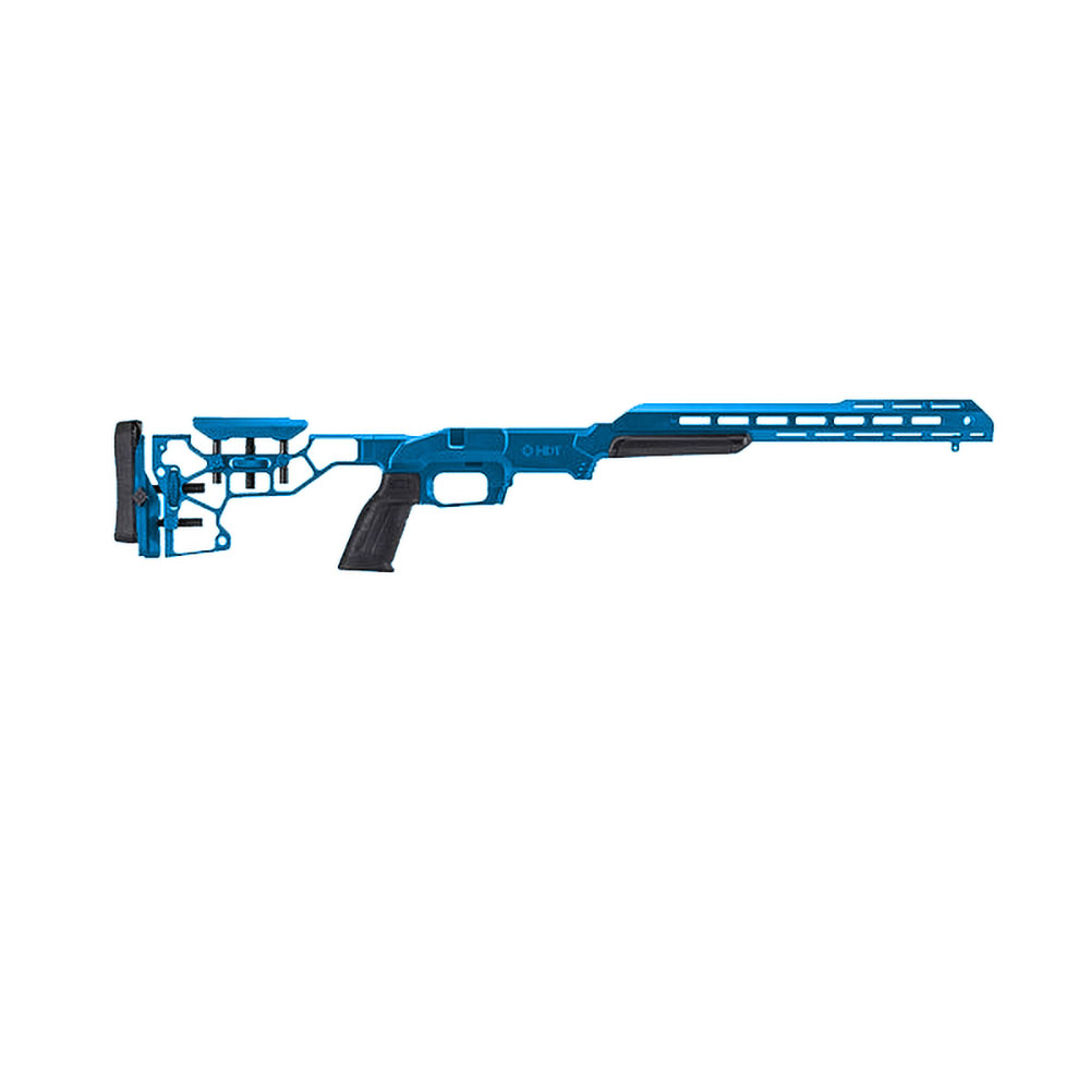 - The buttstock is fully adjustable including lateral adjustment for the butt-pad and the cheek rest. Cheek rest height and butt-pad length-of-pull are adjustable by thumb wheels.