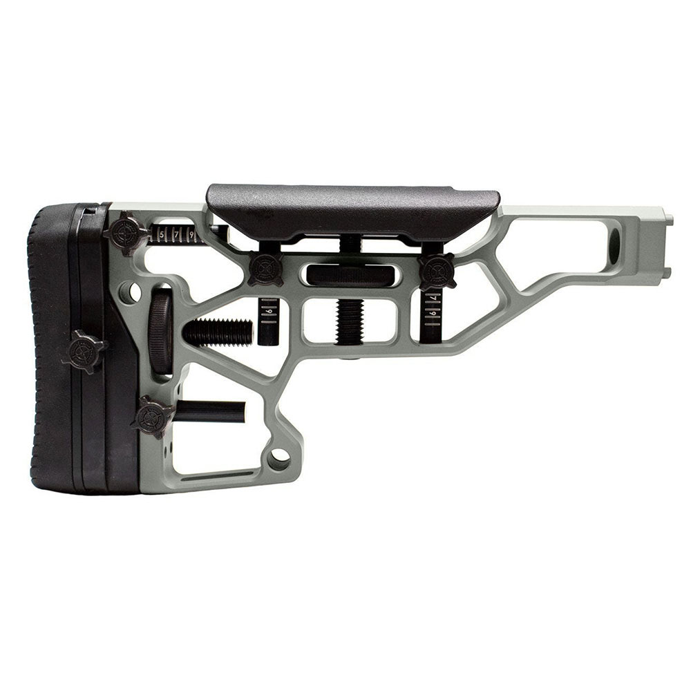 - Verwenden Sie den MDT Elite Fixed Rifle Stock in einer stabilen und sicheren Schießposition.