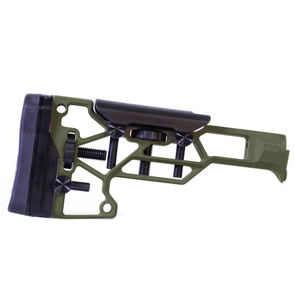 - Nutze die werkzeuglose Anpassung, um die Höhe, die Neigung und die Position der Wangenauflage sowie des Pistolengriffs an deine Schießposition anzupassen.