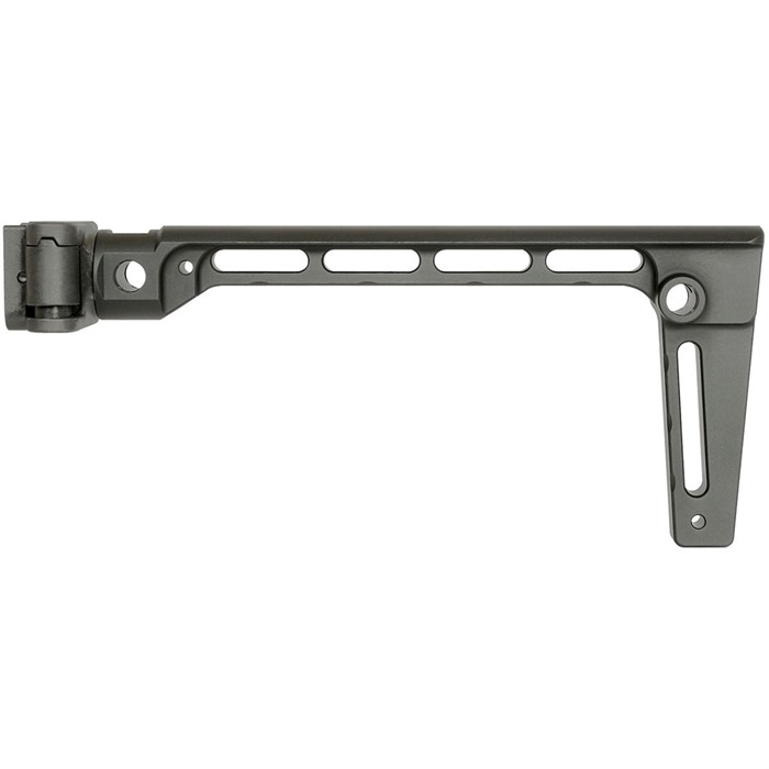 ARM BRACE SIDE FOLDING FEATURES: Heavy-duty side-folding mechanism constructed from 4140 heat treated steel Full-length locking lug for maximum strength Solid positive lock up in both positions Steel clamp with large surface engagement Can be configured to right or left folding Features 5 QD sling attachments Stock is made from Hard Coat Anodized 6061 Aluminum Extremely rigid design Adds 9 1/8” to overall firearm length Adds 0.75” to the length of the firearm in the folded position Complete assembly weight: 14.2 oz. Steel parts are mag phosphate finished Velcro strap included but not shown on photos Made in the USA Midwest Industries Lifetime Warranty It is the responsibility of the purchaser to ensure that possession and use of this item is in compliance with all relevant federal, state, and municipal laws or statutes. End user is responsible for any ATF requirements*
