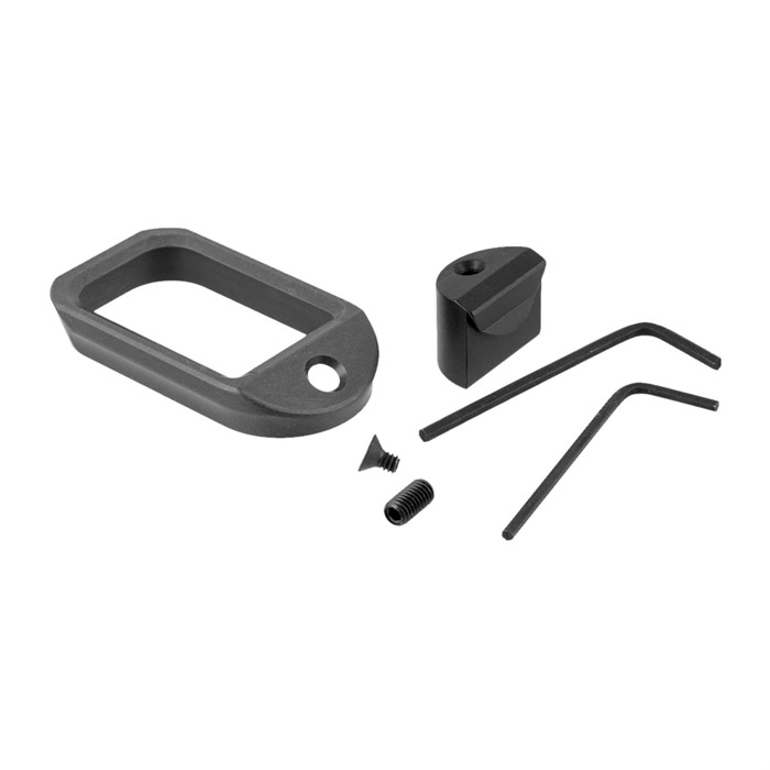 Minimalist magwell designed for EDC and CCW use. Machined with a bevel along the sides that aids in shelfing the hand up and into the pistol. The magwell aids the user to guide the magazines into the magazine well. Compatible with various base pads (OEM, 10-8 Performance, Vickers, Taran Tactical, Arredondo, and Henning). Includes a grip plug, magwell, set screws and allen wrenches for a quick installation.