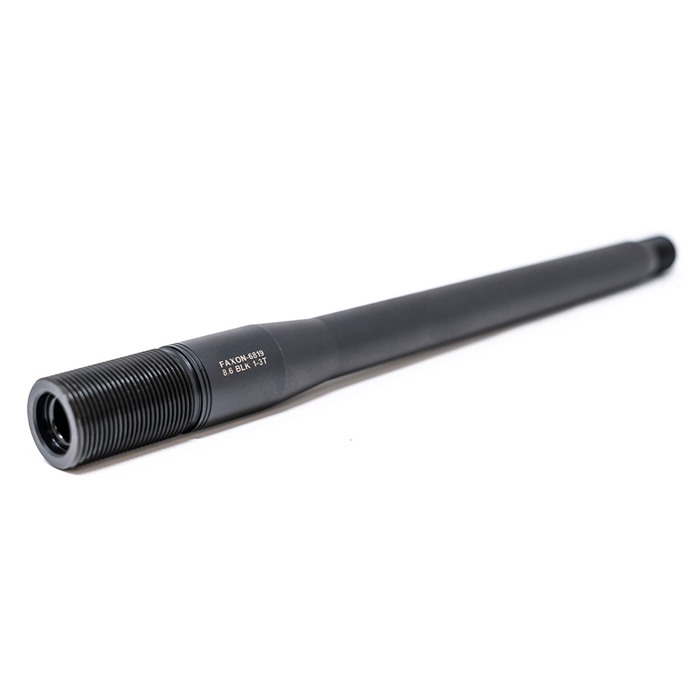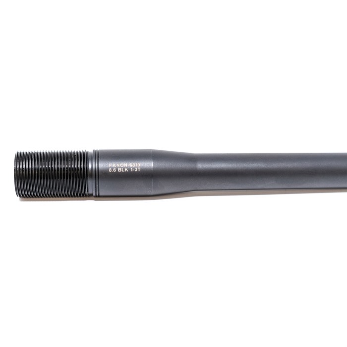 Faxon Firearms is proud to partner with Q on the development of barrels for their revolutionary new round, 8.6 Blackout (8.6 BLK). With barrels employing an impressive 1:3 twist rate, 8.6 BLK channels rotational energy to increase energy on-target. As with all Faxon Barrels, these 8.6 BLK barrels are machined from raw bar stock in their greater Cincinnati Facility. Faxon 8.6 BLK barrels are fully stress-relieved, air-gauge tested, Magnetic Particle Inspected, and 11-degree target crowned to ensure superior accuracy. Constructed of 416-R Stainless Steel, each barrel goes through a battery of tests at each operation until finished in Nitride and final inspected. All Faxon Barrels are individually checked for headspace by precision custom hardened gauges and are backed by the Faxon Lifetime Guarantee. Faxon RemAge© Style Barrels for 8.6 BLK ship with a Thread Protector, Taper Adapter, and Faxon RemAge© Style Barrel Nut. Faxon's barrel nut uses a standard AR Armorer's Castlenut Wrench profile. Consumer Note: At the time of release, 8.6 BLK is not SAAMI certified. Please use appropriate caution while firing and when using reloaded ammunition.