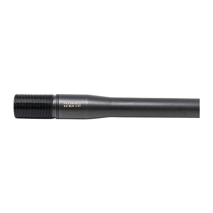 Faxon Firearms is proud to partner with Q on the development of barrels for their revolutionary new round, 8.6 Blackout (8.6 BLK). With barrels employing an impressive 1:3 twist rate, 8.6 BLK channels rotational energy to increase energy on-target. As with all Faxon Barrels, these 8.6 BLK barrels are machined from raw bar stock in their greater Cincinnati Facility. Faxon 8.6 BLK barrels are fully stress-relieved, air-gauge tested, Magnetic Particle Inspected, and 11-degree target crowned to ensure superior accuracy. Constructed of 416-R Stainless Steel, each barrel goes through a battery of tests at each operation until finished in Nitride and final inspected. All Faxon Barrels are individually checked for headspace by precision custom hardened gauges and are backed by the Faxon Lifetime Guarantee. Faxon RemAge© Style Barrels for 8.6 BLK ship with a Thread Protector, Taper Adapter, and Faxon RemAge© Style Barrel Nut. Faxon's barrel nut uses a standard AR Armorer's Castlenut Wrench profile. Consumer Note: At the time of release, 8.6 BLK is not SAAMI certified. Please use appropriate caution while firing and when using reloaded ammunition.