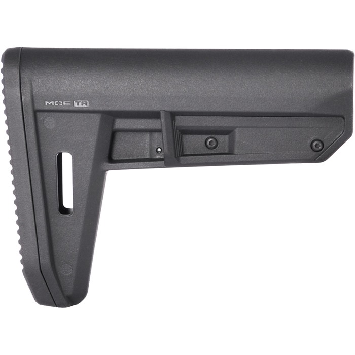 Der MOE TR MIL-SPEC CARBINE STOCK von MAGPUL ist mit nur acht Unzen einer der leichtesten Schäfte von Magpul. Dank des beidseitigen, strukturierten Trigger Release-Mechanismus ist er einer der einfachsten Schäfte, um die LOP (Länge der Schulterstütze) anzupassen sowie den Schaft zu installieren oder zu entfernen.