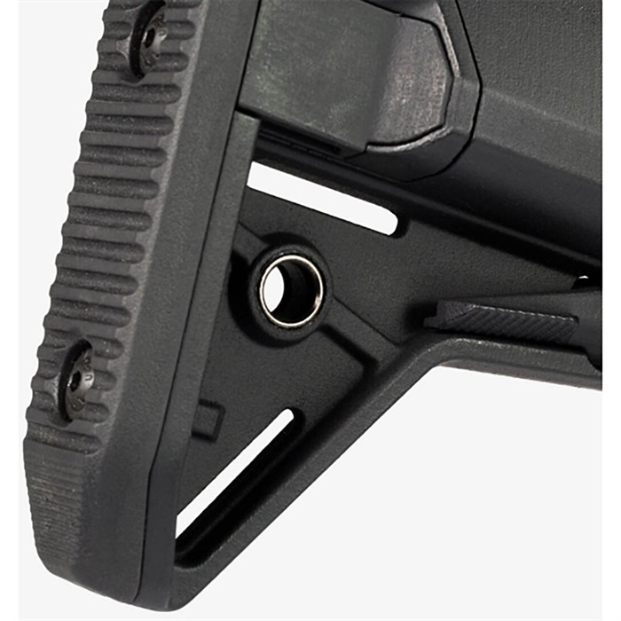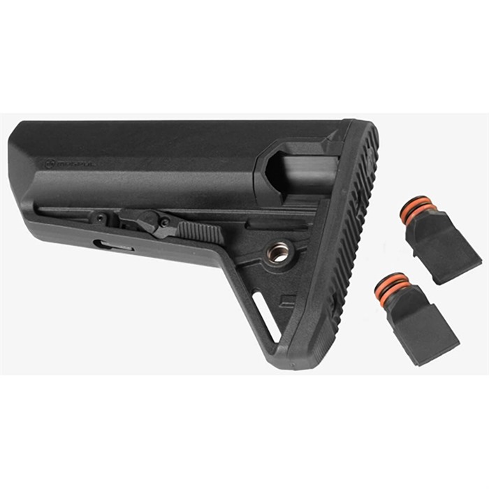 The storage-capable version of the flagship Magpul MOE SL™ carbine stock, the MOE SL-S (Storage) Stock is a direct replacement buttstock for AR15/M4 carbines. The sleek profile, dual-side release latches, and waterproof battery tubes make it the slimmest storage tube stock available. The SL-S provides an enhanced cheek weld and true, O-ring sealed, 10m waterproof battery storage, but fits it into the narrowest package possible to allow a more upright head position and minimize bulk. A rolled toe and angled rubber butt-pad are optimized for use with body armor, and an ambidextrous QD sling swivel socket is included. A unique leaf-spring tension system provides a solid fit on mil-spec receiver extensions, with slightly less friction than the original SL.