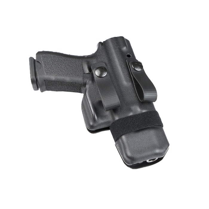 The Morrigan is a revolutionary concealment holster designed specifically for inside-the-waistband carry. While it can certainly be worn forward of the blade of the hip, the Morrigan is best-suited for people who carry their pistol on or behind the blade of the hip. It has an extremely slim, compact profile so as not to add bulk to the dimensions of the firearm. A full-height body shield protects the weapon from sweat, while simultaneously protecting the shooter from scrapes and discomfort caused by sharp edges on the pistol such as slide serrations. The body shield also fully protects the rear sight from snagging or cutting into cover garments while holstered. The exterior of the Morrigan is very smooth and contoured for all-day comfort, but has special features molded into the trigger guard and muzzle area to aid in tucking the rear of the slide and butt of the grip into the body for greater concealability. Retention is adjustable using the innovative 360-degree Velcro wrap, which provides extremely accurate and repeatable retention adjustments without the use of tools. This “tourniquet style” retention provides a very secure fit while still allowing for exceptionally quick presentations of the weapon from the holster. The Morrigan is ambidextrous. It attaches to the shooter’s belt using a pair of IWB soft loops (included). The holster is adjustable for ride height and cant, and can be adjusted to conceal a pistol on a variety of body types. And like all RCS products, the Morrigan is made in the USA, and is covered by our unconditional lifetime warranty.