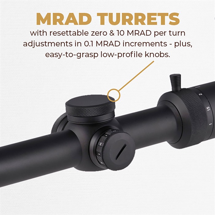 - Second Focal Plane Konfiguration mit 1-6x bietet ein einfach zu erfassendes Absehen bei jeder Vergrößerung