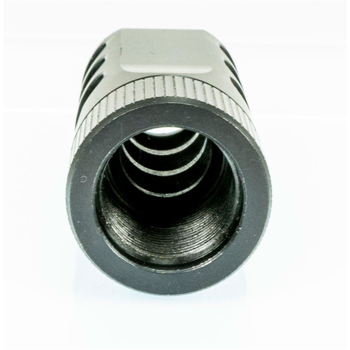 Faxon’s Gunner 3 Port Muzzle Brake is the ideal blend of usability, versatility, and recoil reduction. The 3 ports work to sequentially capture the propellant gasses and redirect them to the sides for maximum recoil reduction. On barrels of all lengths, the Gunner significantly reduces felt recoil. MUZZLOK® Faxon's invented "Muzzlok" feature on this device allows for easy timing and installation of your device without the need for a crush washer or shims. By using the extension nut to adjust the length of the device, you can adjust the rotational timing. It is recommended that you tighten the device to the recommended torque specification of 20-25 foot pounds. By not having to overcome the resistance of the crush washer, this allows devices to be removed and reinstalled in the field if desired. SPECS Material: Steel Finish: Salt Bath Nitride Thread: 11/16x24 TPI Weight: 3.2 ounces w/ MuzzLok Nut Caliber: 458 Socom or Smaller No crush washer needed. Attach and remove in the field. Time your muzzle device quickly and easily.