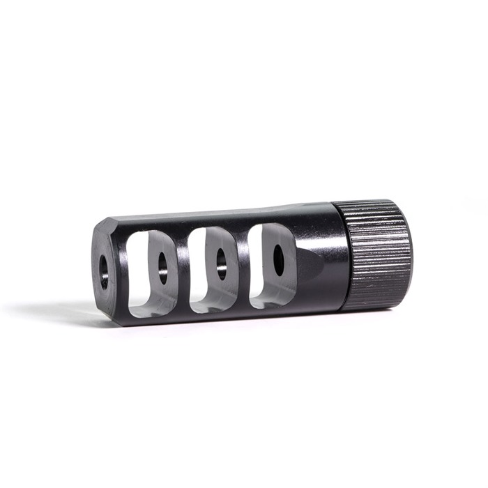 The Gunner 3 Port Muzzle Brake is the ideal blend of usability, versatility, and recoil reduction. The 3 ports work to sequentially capture the propellant gasses and redirect them to the sides for maximum recoil reduction. On barrels of all lengths, the GUNNER reduces recoil by more than 50%! The GUNNER is 100% 3-Gun Nation, USPSA, and IDPA legal for all divisions. No crush washer needed. Attach and remove in the field. Time your muzzle device quickly and easily. MUZZLOK® Faxon's invented "Muzzlok" feature on this device allows for easy timing and installation of your device without the need for a crush washer or shims. By using the extension nut to adjust the length of the device, you can adjust the rotational timing. It is recommended that you tighten the device to the recommended torque specification of 20-25 foot pounds. By not having to overcome the resistance of the crush washer, this allows devices to be removed and reinstalled in the field if desired. SPECS Material: Steel Finish: Salt Bath Nitride Thread: 1/2"-28 TPI Weight: 2.9 ounces w/ MuzzLok Nut Length: 2.4 inches w/ MuzzLok Nut Diameter: 0.9" Caliber: .223/5.56