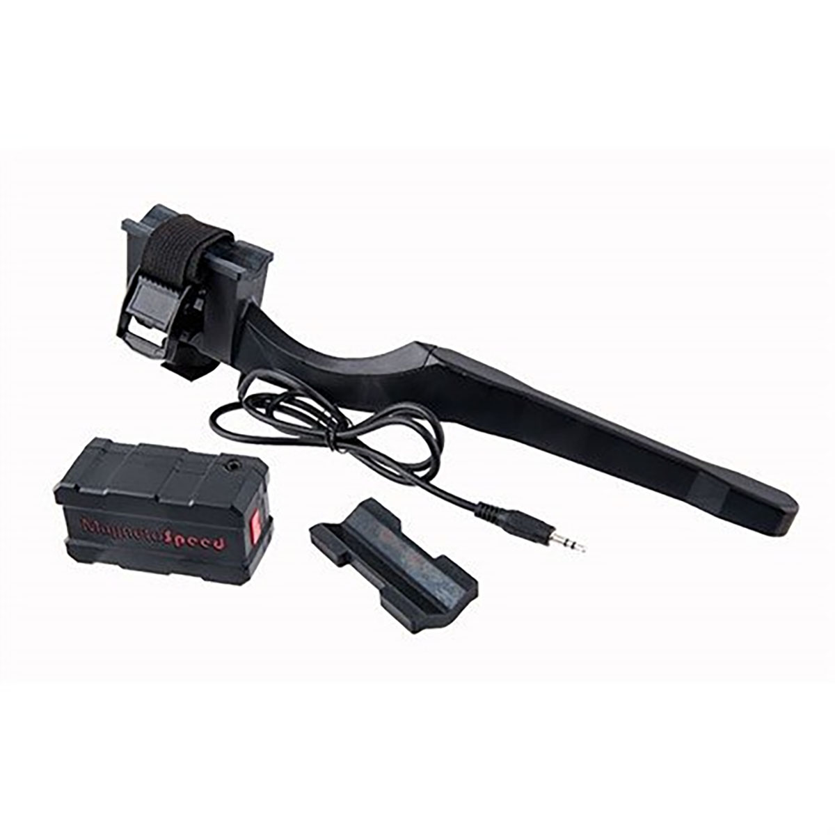 The MagnetoSpeed Sporter Chronograph Kit is designed for barrels with diameters ranging from ½ inch to 1 inch. It also accommodates muzzle devices such as muzzle brakes, flash hiders, and more up to 2.7 inches in length, making it ideal for contoured rifle barrels (Sporter barrels). Features of the MagnetoSpeed Sporter: One-button display: Shows velocity and statistics from recent shots; plug in to power on Battery: 9‑Volt (included) Easy-access battery compartment: No screwdriver required for replacement Three sensitivity settings: Allows fine-tuning for different barrels and conditions Integrated, quick-attach strap system: Includes metal buckle and Triad thumbscrew for secure mounting Proven technology: Updated sensor design for reliability and accuracy Integrated 3.5 ft sensor cable