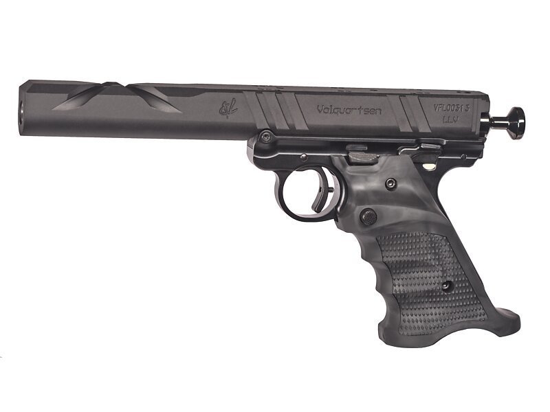 The Mamba-TF features the Volquartsen LLV Competition Upper designed with a stainless steel barrel, laser hardened stainless steel breech, and housed in an aluminum shroud. This design provides match grade accuracy in a lightweight package. Available in a 4.5" or 6" barrel length.