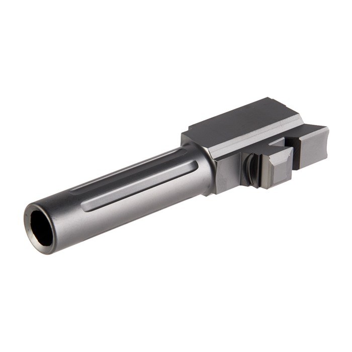 The Agency Arms Non-Threaded Mid Line Barrel offers owners of Glock's popular G43 sub-compact a chance to add an extra level of quality to their carry pistols. The Agency Arms Non-Threaded Mid Line Barrel features construction from 416R stainless steel, ensuring that those who carry the G43 daily won't suffer from corrosion or excess wear and tear on their gun barrels. Company uses broached rifling Uses 1:10 rate of twist for 9mm Barrel measures 3.4 inches long DLC finish The Agency Arms Non-Threaded Mid Line Barrel also features a number of cosmetic flourishes, including machined gear flutes on the outside of the barrel.