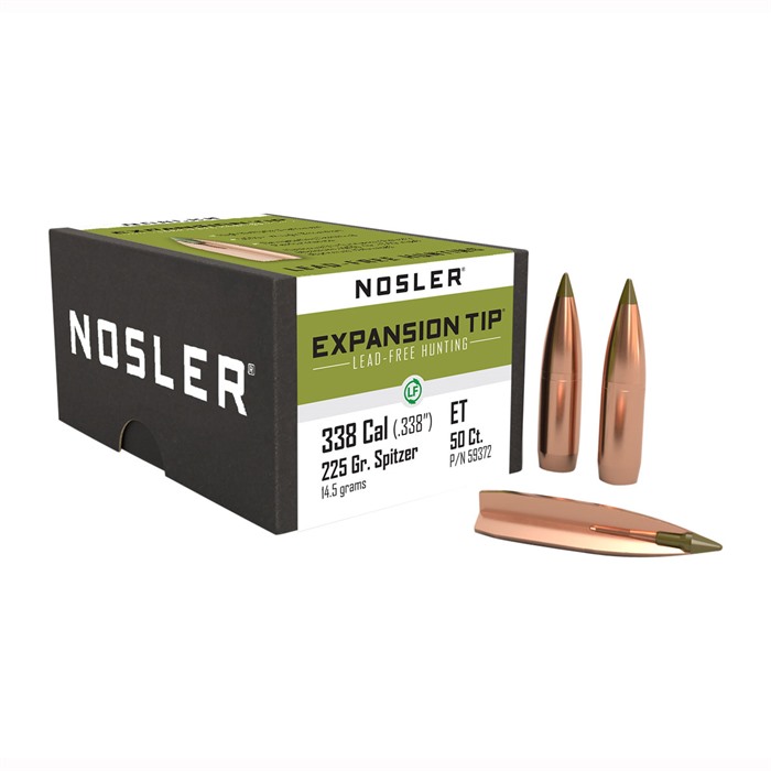 Die EXPANSION TIP® BLEIFREI 30 KALIBER (.308) SPITZER GEWEHRGESCHOSSE und 338 KALIBER (0.338") 225GR SPITZER von Nosler sind die perfekte Wahl für alle, die bleifreies Jagen bevorzugen. Diese Geschosse erfüllen alle gesetzlichen Anforderungen für bleifreie Jagdmunition und bieten außergewöhnliche Stoppkraft sowie eine unvergleichliche Penetration über ein breites Spektrum von Aufprallgeschwindigkeiten.