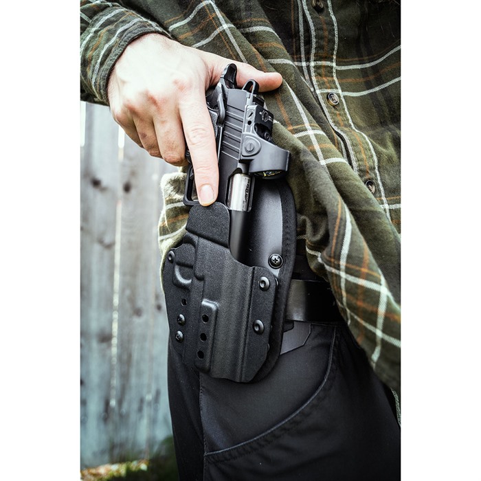 Entdecke den OMNICARRY MULTI-FIT OUTSIDE-THE-WAISTBAND HOLSTER, der für über 300 Handfeuerwaffen geeignet ist. Dieser Holster bietet dir eine universelle Passform und ist ideal für das verdeckte Tragen.
