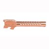 OPTIMIZED MATCH BARREL FOR GLOCK® 17 GEN 1-4 ZEV Technologies Optimized Match Barrels have been redesigned for improved performance and Gen 1-4 compatibility. Enhanced features include a recessed target crown, a new match chamber, and a stylized barrel hood with caliber and model engravings and a loaded chamber indicator. ZEV’s proprietary broach cut 1 in 14” left hand twist rifling was developed to create the most accurate Glock®aftermarket barrel available, and testing confirms a significant increase in accuracy over factory barrels. Match Grade drop in barrel 1-14” twist rate SAAMI spec Match chambers. DISCLAIMER: “GLOCK” is a federally registered trademark of GLOCK, Inc. and is one of many trademarks owned by GLOCK, Inc. or GLOCK Ges.m.b.H. Neither Brownells nor this site are affiliated in any manner with, or otherwise endorsed by, GLOCK, Inc. or GLOCK Ges.m.b.H. The use of “GLOCK” on this page is merely to advertise the sale of GLOCK pistols, parts, or components. For genuine GLOCK, Inc. and GLOCK Ges.m.b.H. products and parts visit www.glock.com.