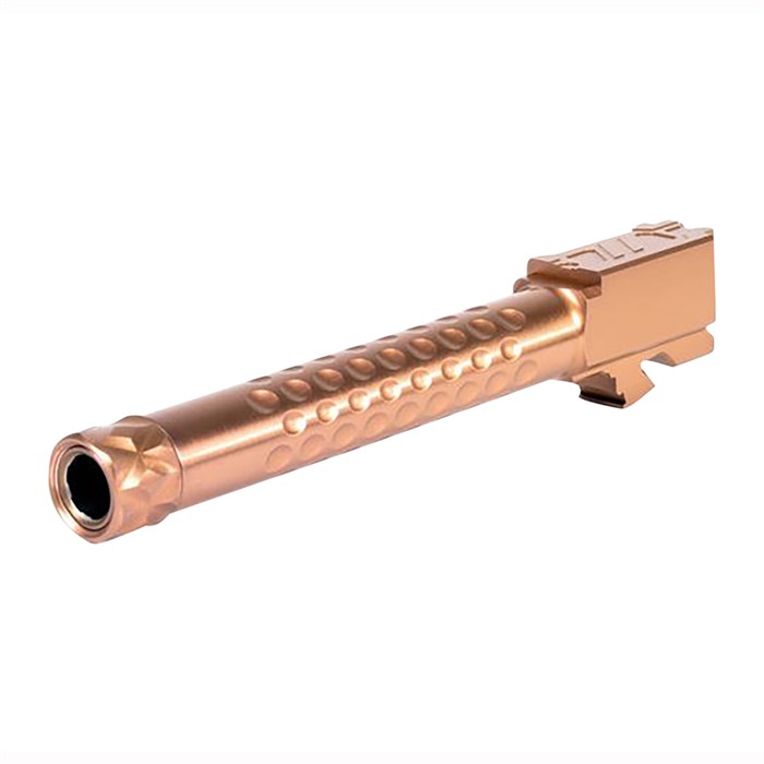 OPTIMIZED MATCH BARREL FOR GLOCK® 17 GEN 1-4 ZEV Technologies Optimized Match Barrels have been redesigned for improved performance and Gen 1-4 compatibility. Enhanced features include a recessed target crown, a new match chamber, and a stylized barrel hood with caliber and model engravings and a loaded chamber indicator. ZEV’s proprietary broach cut 1 in 14” left hand twist rifling was developed to create the most accurate Glock®aftermarket barrel available, and testing confirms a significant increase in accuracy over factory barrels. Match Grade drop in barrel 1-14” twist rate SAAMI spec Match chambers. DISCLAIMER: “GLOCK” is a federally registered trademark of GLOCK, Inc. and is one of many trademarks owned by GLOCK, Inc. or GLOCK Ges.m.b.H. Neither Brownells nor this site are affiliated in any manner with, or otherwise endorsed by, GLOCK, Inc. or GLOCK Ges.m.b.H. The use of “GLOCK” on this page is merely to advertise the sale of GLOCK pistols, parts, or components. For genuine GLOCK, Inc. and GLOCK Ges.m.b.H. products and parts visit www.glock.com.