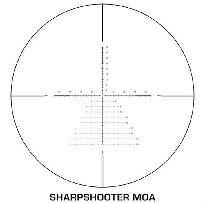 - Die Sharpshooter FFP gravierten Absehen sind für präzises Messen und Haltepunkte auf lange Distanz ausgelegt.