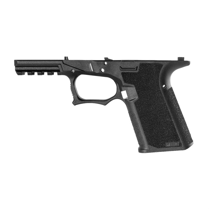 Home pistol builders, here's your chance to build a Glock® 19 or 23 with better ergonomics, more Picatinny real estate, and better grip texture than factory models. This Compact Frame combines innovative ergonomics and features with a smaller form factor to provide the ultimate in shootability and comfortable concealment. Built with high-strength reinforced polymer construction, this frame comes stripped. This model features a more aggressive grip texture. PLEASE NOTE: Because this is a serialized 100% complete frame, it must be purchased through an FFL. 100% complete Stripped Frame Smaller form factor than factory G19s or G23s Made from high-strength reinforced polymer Accepts standard-capacity G19 and G23 mags Locking block rail system and rear rail module Aggressive grip texture Compatible with PF-SeriesTM Compact or Glock® Gen3 19/23 parts.