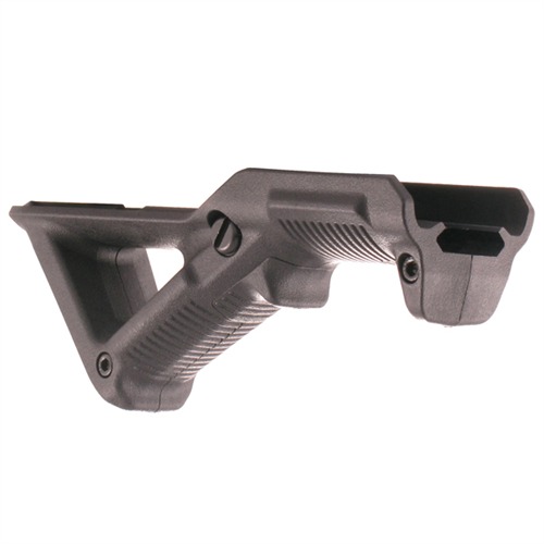 Low-profile forward grip/hand stop takes advantage of natural body mechanics to give the shooter more precise control, faster pointing, and less operator fatigue. The Magpul AFG™ (Angled Fore-Grip) positions the support hand close to the centerline of the bore for maximum recoil control to aid in fast, accurate follow-up shots. Provides a consistent reference point for finding the correct hand position quickly when mounting the weapon under stress. The natural, ergonomic hand position with the palm facing up results in better blood flow than the “clenched fist” stance often used with vertical grips that leads to fatigue and loss of sensation during long periods in the ready position. Improves on the “thumb break” hold often used with standard vertical grips by allowing the thumb to rest comfortably alongside the top rail, pointing forward, with the rest of the hand in full contact with the forend. Heavy-duty reinforced molded polymer construction stands up to the hard knocks of tactical operations, and deep, molded-in grooves help you maintain a firm grip even with wet hands. Interchangeable inserts give the choice of a straight, uninterrupted gripping surface or one with a convenient ledge to support the index finger. Slides over any Picatinny-style rail and locks securely in place with a hardened steel crossbolt. The original AFG1™ provides a large grasping surface and covers approximately 5½" of rail.