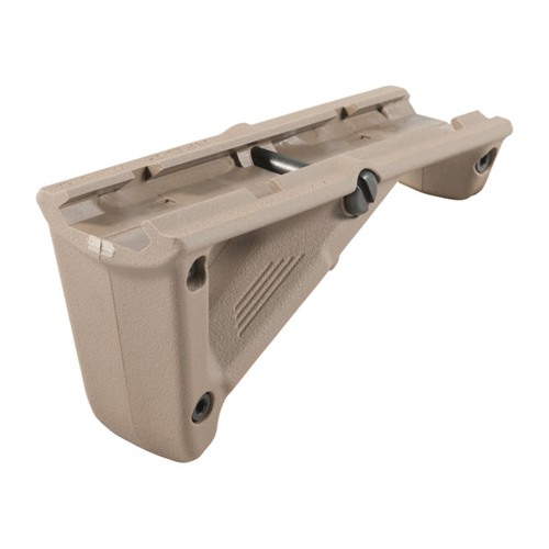 Low-profile forward grip/hand stop takes advantage of natural body mechanics to give the shooter more precise control, faster pointing, and less operator fatigue. The Magpul AFG™ (Angled Fore Grip) positions the support hand close to the centerline of the bore for maximum recoil control to aid in fast, accurate follow-up shots. Provides a consistent reference point for finding the correct hand position quickly when mounting the weapon under stress. The natural, ergonomic hand position with the palm facing up results in better blood flow than the “clenched fist” stance often used with vertical grips that leads to fatigue and loss of sensation during long periods in the ready position. Improves on the “thumb break” hold often used with standard vertical grips by allowing the thumb to rest comfortably alongside the top rail, pointing forward, with the rest of the hand in full contact with the forend. Heavy-duty reinforced molded polymer construction stands up to the hard knocks of tactical operations, and deep, molded-in grooves help you maintain a firm grip even with wet hands. Interchangeable inserts give the choice of a straight, uninterrupted gripping surface or one with a convenient ledge to support the index finger. Slides over any Picatinny-style rail and locks securely in place with a hardened steel crossbolt. The more compact AFG2™ is shorter and narrower to take up even less rail space, with enough clearance to fit a larger variety of weapons. Both models may be installed on tactical shotguns and other rifles with railed forends; won’t interfere with insertion and removal of magazines on AK-47s.