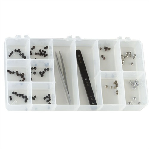 050806102675 Praktische, kostensparende Auswahl an positiven Stop- und Standard-Plug-Schrauben in den beiden beliebtesten Größen. Plug-Schrauben sind ein echter Zeitersparer in der Werkstatt. Schnelle und einfache Möglichkeit, Löcher in Läufen und Gehäusen von Feuerwaffen zu füllen. Sie können bündig geschliffen und blau oder poliert werden, und meistens wird es schwer sein zu erkennen, ob jemals ein Loch vorhanden war. Positive Stop-Schrauben haben eine abgerundete Oberseite, die sich nahtlos in die meisten Laufkonturen einfügt, ohne dass geschliffen werden muss. Das Kit enthält außerdem ein Paar verchromte, flachzahnige Pinzetten, um die richtige Schraube leicht aufzuheben, und unser praktisches Checker/Shortener Jig macht das Schleifen der Schrauben auf die richtige Länge schnell und einfach.Nachbestellt, Lieferzeit ca. 4-12 Wochen aus dem Großlager.