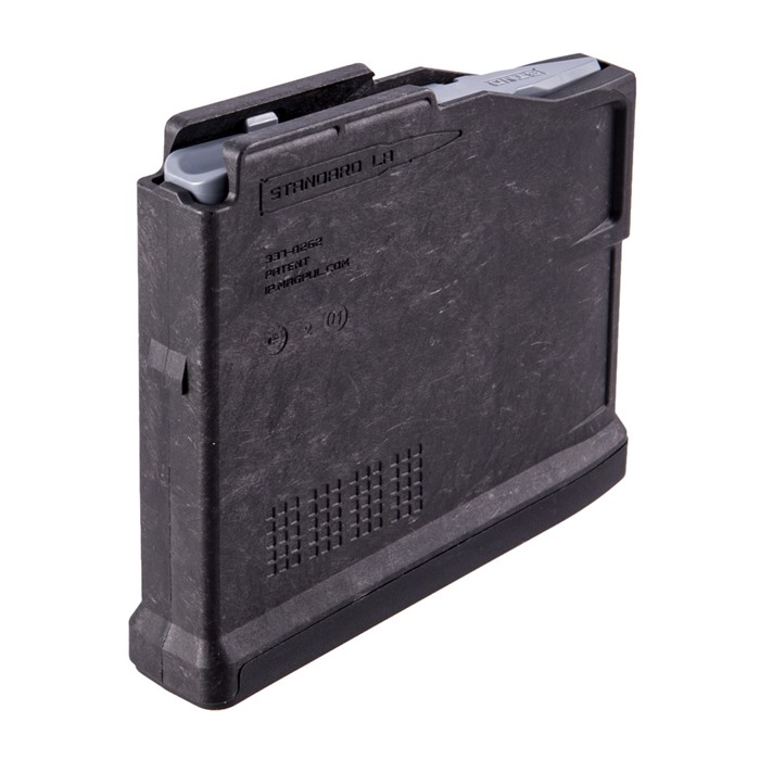 The PMAG 5 AC L, Standard is a reliable and durable polymer magazine for .30-06 based family of cartridges and is compatible with long action AICS-spec bottom metal, to include the Bolt Action Magazine Well 700L for the Hunter 700L Stock. Built using M3 technology, this magazine is advanced in both material and manufacturing processes providing an economical, lightweight, durable and reliable single-stack bolt action magazine. It comes standard as a 5-round capacity magazine for hunting regulation compliance, but the follower can be easily modified by the user to increase the capacity to six rounds for field, competition, or combat use. Made in the USA FEATURES Compatible with long action AICS (Accuracy International Chassis Systems) pattern bottom metal and cartridges built on a 0.470" case head such as .30-06 Springfield, .25-06 Remington, .270 Winchester, .280 Remington, 8mm-06, and others* 5-round capacity, but the follower leg can be easily clipped to increase the capacity by one extra cartridge Next-generation impact and crush resistant polymer construction Self-lubricating follower for increased reliability Long life stainless steel spring Paint pen dot matrix panels on the bottom of the body to allow for identification marking Flared floorplate aids magazine handling and is easy to disassemble for maintenance NOTE: Not recommended for use with short action cartridges such as the 7.62x51/.308 Winchester