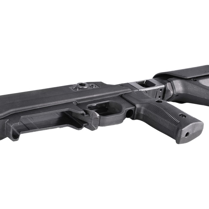 Kompatibel mit Remington® 700 Long Action und anderen Remington 700 Long Action Fußabdrücken. Der Schaft/Backenauflage muss vor dem Entfernen des Bolzens aus der Aktion vom Pro 700L Lite entfernt werden. Geliefert mit MAG698 (Magnum Long Action AICS 5-Runden PMAG).